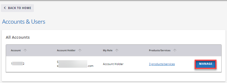 - Select your account: Locate the account you want to delegate access to and click the "Manage" button.